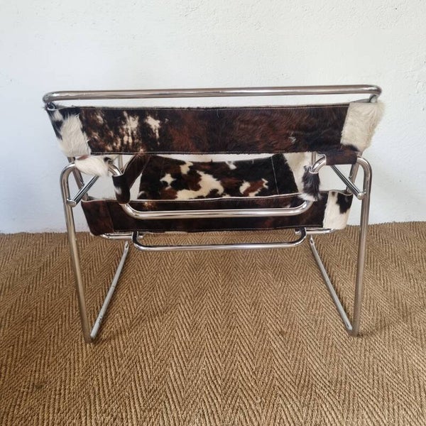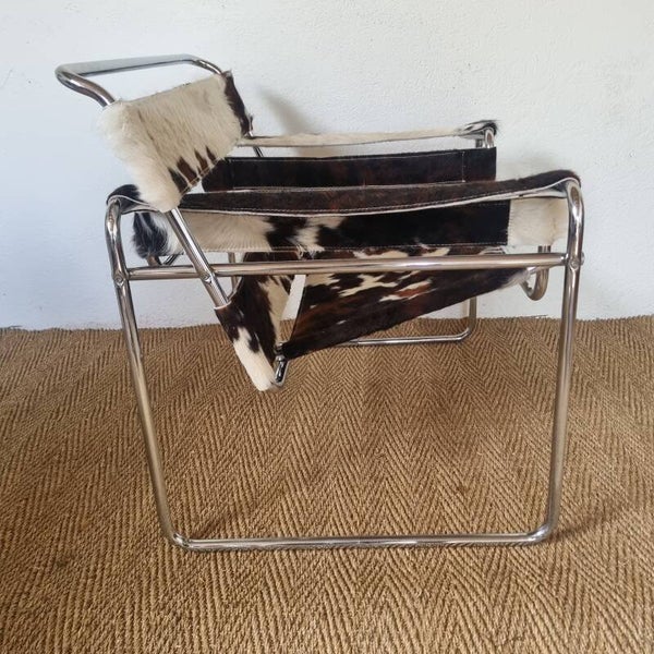 Fauteuil "wassily" marcel breuer en peaux de vache