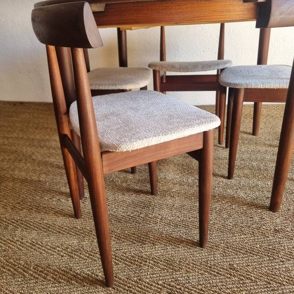 Très belle ensemble de salle à manger en teck, c'est le model roudette desagner pour hans olsen distribuer par rojle from au Danemark.
